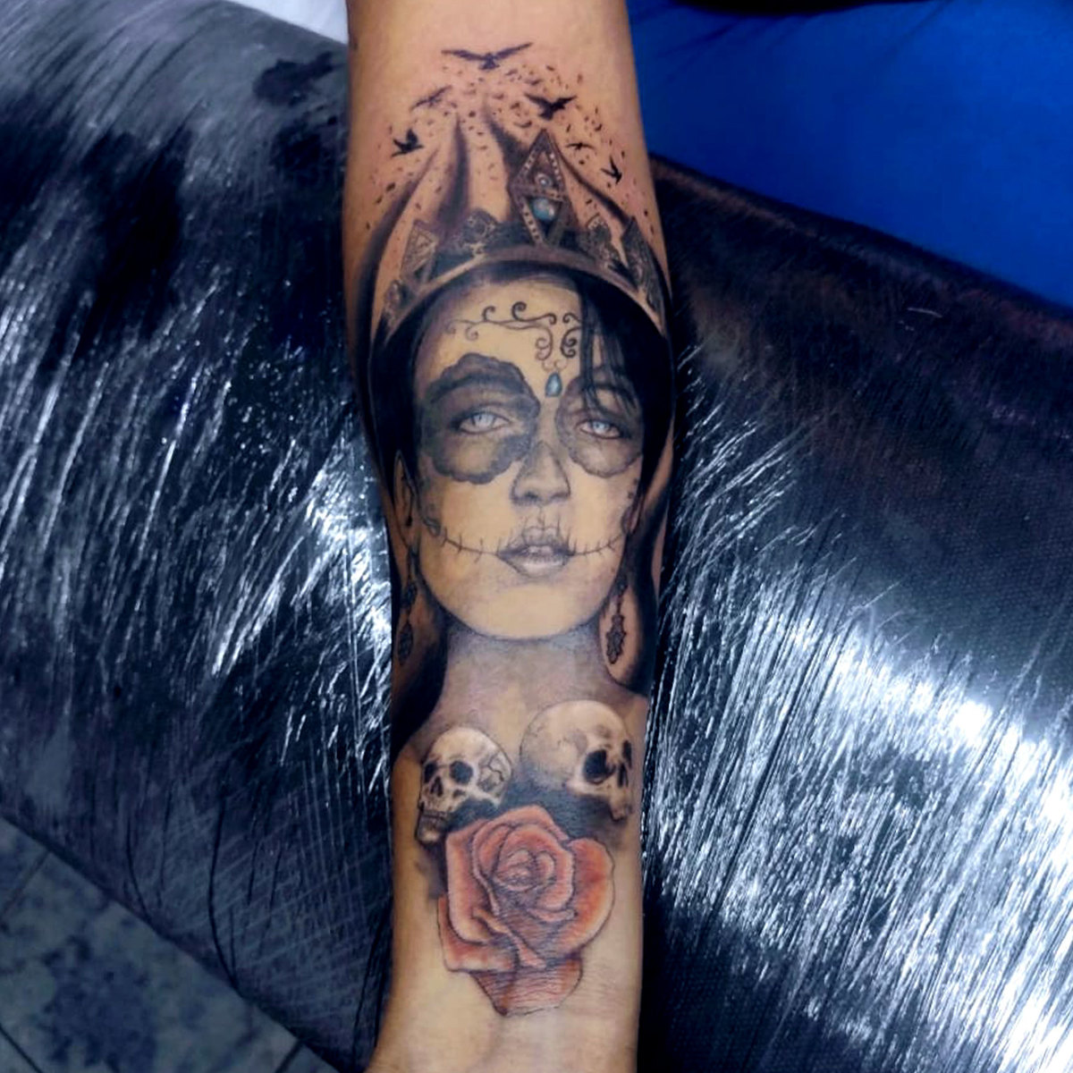Finalização desta tattoo autoral onde criei uma nova versão da "Catrina" para minha amiga Jaqueline. Muito feliz pela oportunidade de fazer algo tão importante e permanente!